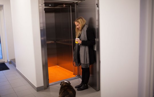 Lift: Kahlua er med sine næsten 10 år blevet en moden herre. Så er det rart med en hydraulisk lift som et energineutralt alternativ til en traditionel elevator.