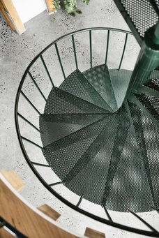 Terrassen er skåret ud af cirkelformen, så den ikke er bygget uden for huset, men er en del af selve huset