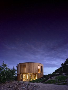 Det runde hus er bygget af træ og stål i to etager og fylder ikke mere end 10 meter i diameter. Foto: Derek Swalwell.