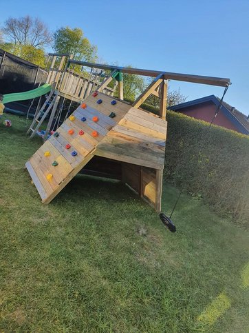Den yngste datter hos Ole Kruhøffer Komdrup er kommet godt til vejs efter at Ole har bygget en ny træhytte på ca 3x2 meter. Ole Kruhøffer Komdrup har brugt de smalle terrassebrædder fra Bauhaus og noget spærtræ til projektet. Det var oerskudstræ fra sidste sommers terrasseprojekt (på ca 60 m2)