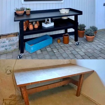 Wickie Kirstine Bay har bygget et nydeligt plantebord til haven af genbrugstræ. Pris: Den nette sum af 0 kroner.
