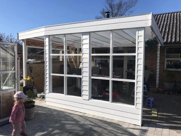 Nikolaj Borring har bygget nye vinduer til den overdækkede terrasse.