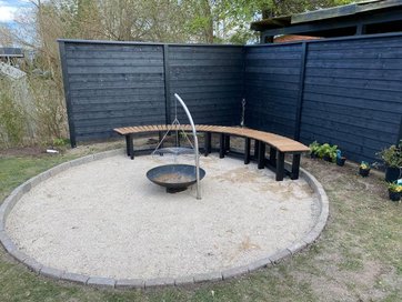 En ny rund bålplads med læhegn og bænk er vokset frem i løbet af påsken hos Tenna Rosenmai Stockfleth.