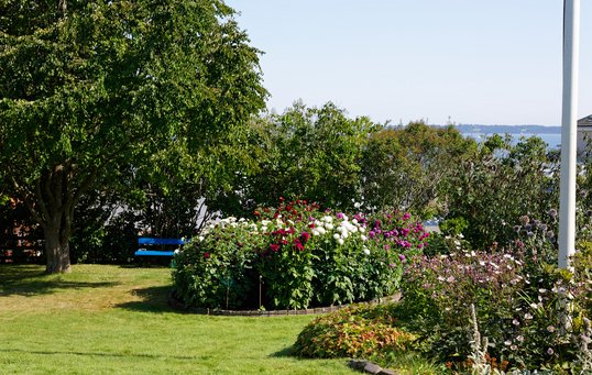 - Der har været udfordringer med den sandede jord, vi bor på her nær havet. Men med renset kompostjord hentet gratis på genbrugsstationen og kunstgødning, vokser vore Dahliaer over al forventning, fortæller Kirsten Høgild, som holder udgifterne nede ved at bytte knolde med andre inkarnerede Dahlia-fans og udveksle ideer til ændringer af bede mm.