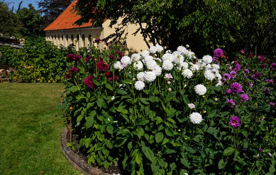 - Dahlia er populær som haveblomst og blomstrer sensommer og efterår.