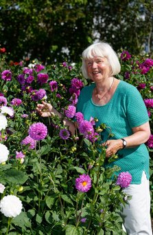 Kirsten Høgild fik havens første Dahlia af sin moster Ruth ved indflytningen i huset i 1978. Foto: Jan Ove Kristensen