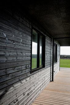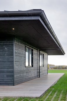 Dennis og Louise valgte at bygge et træhus, hvor de bærende konstruktioner er i træ i stedet for beton, og facaden er beklædt med træ. Der er lavet et ekstra stort udhæng på huset, og facadebrædderne er varmebehandlet, så træet bliver beskyttet og sikres længere levetid.