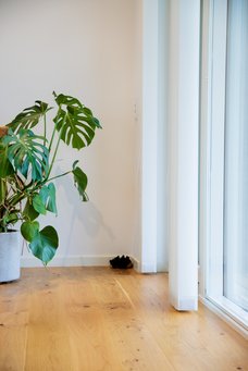 Skær ned på plast: I stedet for dampspærre er der lavet en dampbremse. Huset er isoleret med træfiber, og som dampbremse er der en OSB-træplade. Huset opfylder bygningsreglementets krav til, hvor tæt et nybygget hus skal være og har bestået en ”blower door test”, der tester tætheden.