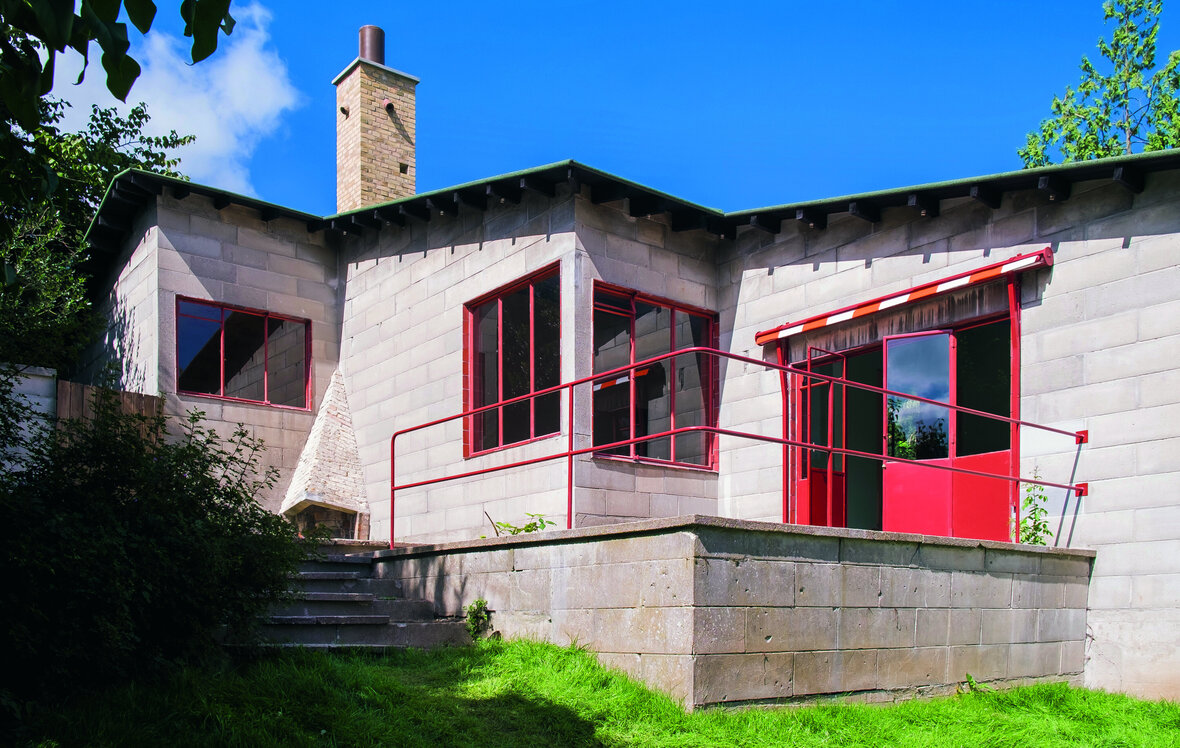 De præfabrikerede betonblokke fremstår tydeligt. Selvom det allerede i 1942 overgik til andre ejere, blev huset aldrig pudset op eller malet, og i dag efter Realdania By & Bygs restaurering fremstår det som originalt med den særegne rødorange maling, der beskytter metallet.