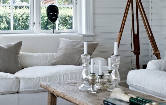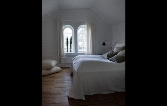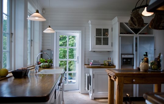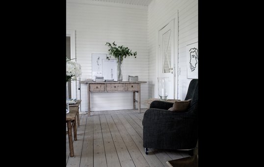 Få et kig ind i træhuset her i reportagen fra 2015. Udvendigt er det med en flot, sort træfacade, mens det hvide præger det indvendige.