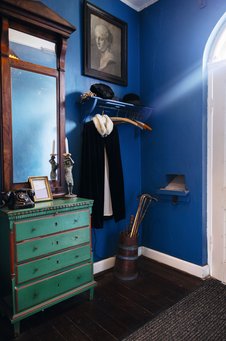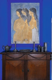 – En lysende, stærk blå farve, som vi ved, var moderne i omtalte periode, og som også er fundet i fx Alhed og Johannes Larsens hjem i Kerteminde. Men at gå all in og male alle væggene ultramarin, det har mode eller ej været heftigt, fortæller Helle Nissen Gregersen.