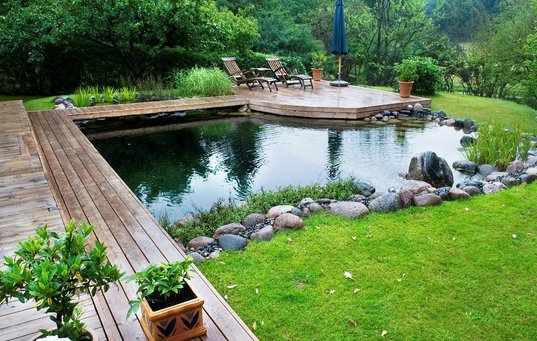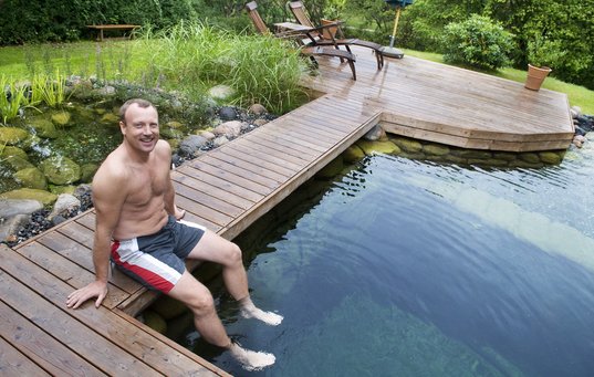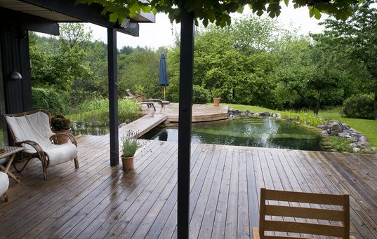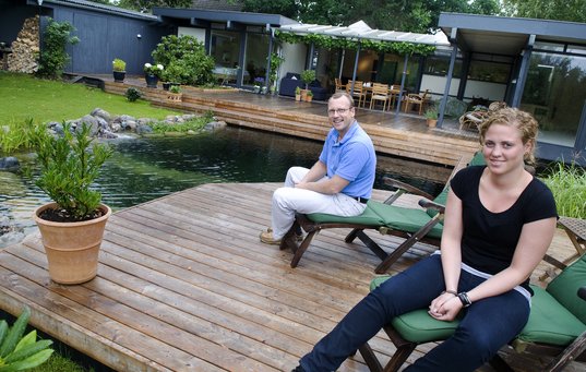 Mette Okholm og Klavs Holm vandt i 2008 Videncentret Bolius'sommenkurrence 'DM i vand i haven' med deres flotte svømmesø.