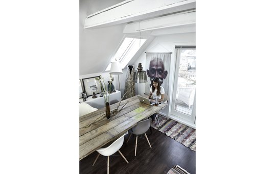 Så i stedet for kiggede jeg opad. Lejligheden har en lille hems oppe under tagryggen med adgang via en stige, hvor vi i første omgang havde smidt en masse rod og flyttekasser op. Efter en grundig oprydning, benhård udsmidning og en gang maling blev det mit soveværelse. Det er – indrømmet – et lidt komprimeret kompromis, men bliver jeg træt af at kravle op under loftet for at sove, låner jeg den ekstra seng, som står på min datters værelse i de uger, hvor hun bor hos sin far.
