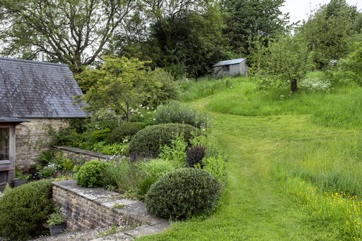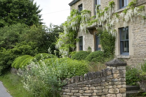 Og da Alison Jenkins og Patrick Haines’ hus dukker op, passer det fuldstændig ind i billedet. Et hyggeligt, gammelt hus bygget i den kalksten, som går igen på egnen, med stengærde foran og blåregn på facaden. Bag huset ligger haven, som føjer sig lige så fint ind i landskabet med højt græs og en lille flok får, som går på en eng i den bakkede have.