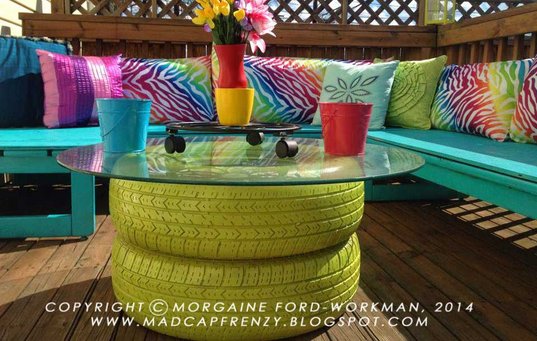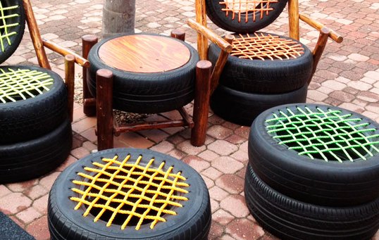 Gamle bildæk som gynger, sandkasser og klatrestativer har været kendt i både haver og på legepladser i mange år. Men nu er mange også begyndt at bruge de udtjente dæk som havemøbler, pynterammer, dørmåtter og urtepotter.