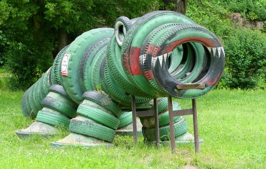 Når du genanvender brugte bildæk til nye formål på legepladsen eller i haven, bruger du af de ressourcer, der allerede er fremstillet. Derved skal der ikke bruges energi og materialer til at fremstille fx et plasticsæde til gyngen eller krukke til blomsterne.