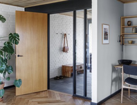 Derfor har både murstensvæggene, trælofterne og de sortmalede vinduesrammer med største selvfølgelighed fået lov til at blive. Det samme gælder klinkerne i det dobbeltbadeværelse, som må være et af landets mest velbevarede.