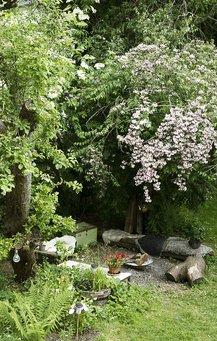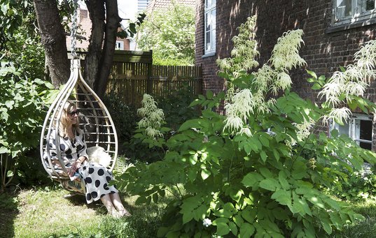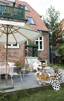 Hun har efter mange år i lejligheder taget livet med hus og have til sig og nyder at kunne gå ud i den gamle have, hvor der bliver eksperimenteret med både blomster og spiselige planter, mens de gamle træer bevares.