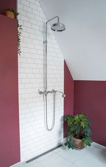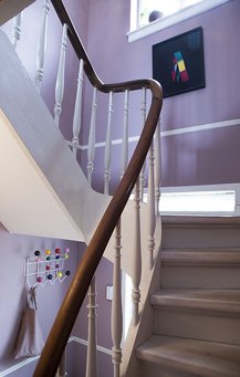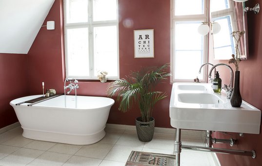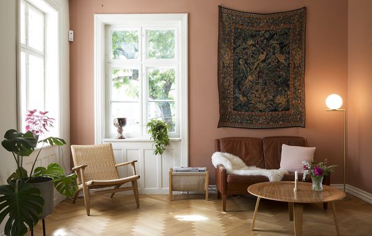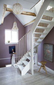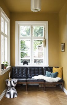 – Faktisk startede jeg med at male alle vægge hvide, men gik så i gang med at studere farver lidt nærmere. Jeg har brugt historiske farver, som passer til den tid, hvor huset blev bygget og har bl.a. været inspireret af farverne på Thorvaldsens Museum og Glyptoteket. Jeg har testet farverne på lærred undtagen én gang, og der blev det heller ikke godt. Men når det handler om farver, er det bare at kaste sig ud i det, det kan jo altid males over, fortæller husejeren.