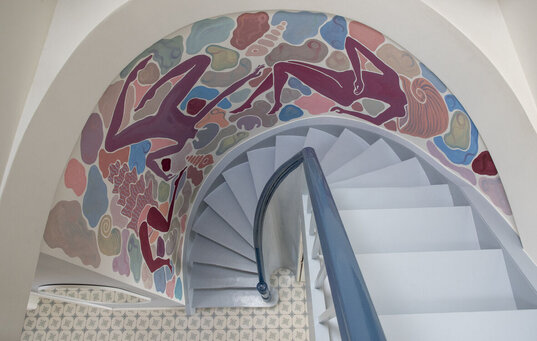 På samme måde har Marie det med vægmaleriet i villaens trapperum, der forbinder entreen med førstesalen.