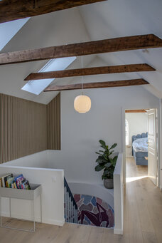 Lykkeligvis bød renoveringen af det gamle hus ikke på mange ubehagelige overraskelser, men trapperummet gav dog tømreren en smule hovedbrud. Familien ønskede nemlig at få åbnet op mellem de to etager for at få mere lys ind, og det betød, at den originale trappe skulle forlænges med tre trin, hvilket var lidt af en håndværksmæssig udfordring. Da det endelig lykkedes, var alle glade, husker Marie, men de var stadig ikke helt i mål, følte hun.