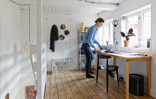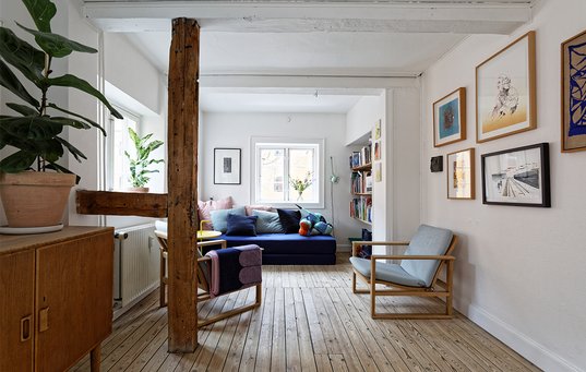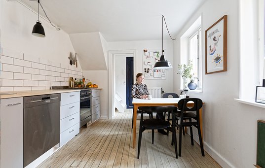 – Ni ud af ti ville nok have rådet os til at vælge rækkehuset. Men vi kunne ikke glemme den sjove og skæve lejlighed og slog til, selvom vi egentlig havde afskrevet boligen som ikke-børnevenlig, husker Maria Damgaard og begrunder, hvorfor de endte med at købe lejligheden.