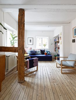 – Vi er gået ind i boligkøbet med åbne øjne. Bliver vi boende og ønsker at ændre på rummenes fordeling og funktion, er vi parat til at søge og eventuelt forhandle med de relevante myndigheder. For at få råd til at bo her i kvarteret på Christianshavn har vi måttet gå på kompromis med pladsen, som jo er trang. Men vi er ikke gået på kompromis med alt det andet, siger Maria.