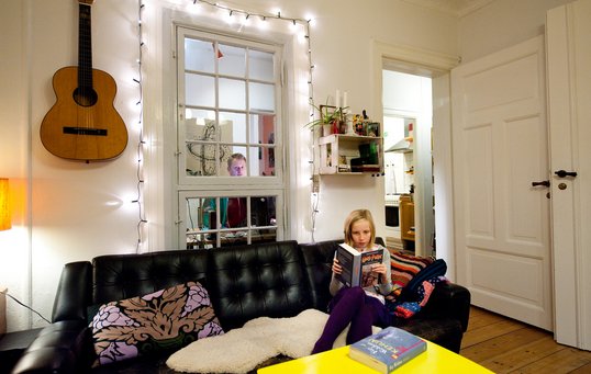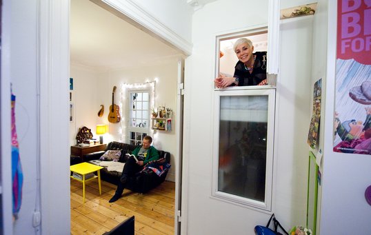 - Nej, egentlig ikke. Lejligheden er indrettet, så vi kan lukke dørene over alt og være lidt alene, siger Mie.