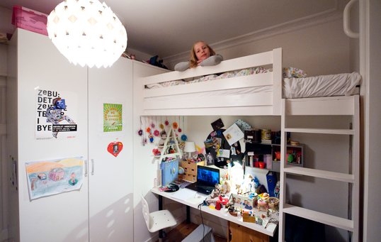 - Hvis en af pigerne har haft mareridt og kommer ind i vores seng, så bliver den ene af os voksne nødt til at rykke ind i børneværelset, smiler Morten.