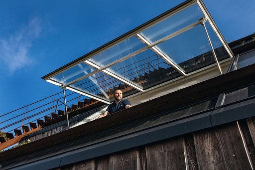 – Ja, det ville have været nemmere, hvis vi ikke havde sidste etage på, indskyder hans kone.