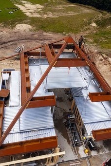 - Der er brugt 70 ton stål, mange douglasgraner, som stod på grunden, og glas. Der er 560 kvadratmeter under tag.