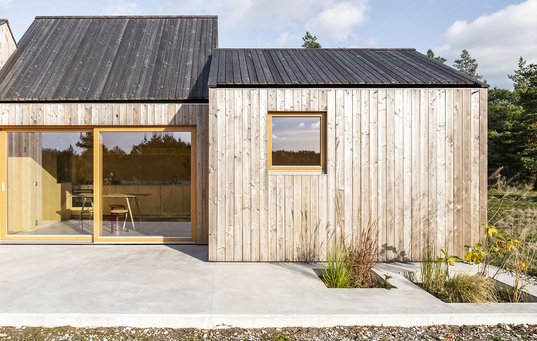 Rammefri vinduer, store skydedøre og tagvinduer skaber fokuserede udsigter mod heden og bringer udvalgte landskaber og himmelkig ind i hvert rum i huset. Udsigter, som giver hvert rum en særlig karakter, og som tilsammen giver en følelse af, at hus og landskab flyder sammen.