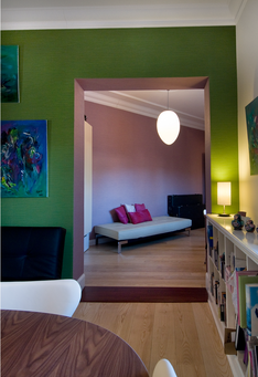 Ben havde godt styr på istandsættelsen, og hans fortid som art director for magasinet Wallpaper fornægtede sig ikke, da han skulle vælge farver og tapeter til de mange rum.
