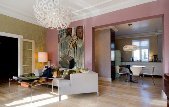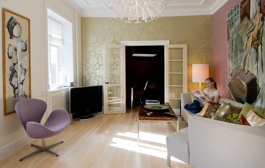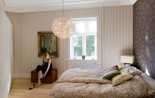 Når man bevæger sig gennem den 139 kvm store lejlighed i Skovshoved nord for København, fanger det opmærksomheden, hvor forskellige de mange rum er – ikke mindst på grund af de mange forskellige tapeter.
