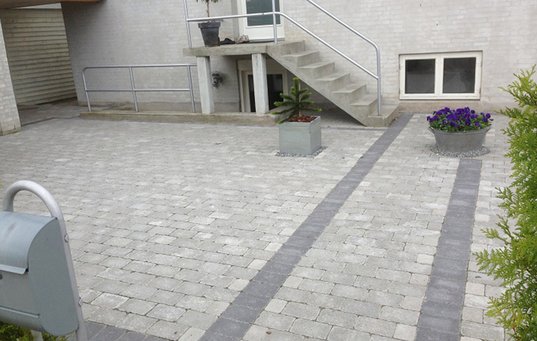 Det er en god ide med brede fuger, da regnvandet har lettere ved at sive ned i jorden i stedet for at blive ledt ned i kloakken. Foto: Jesper Ray