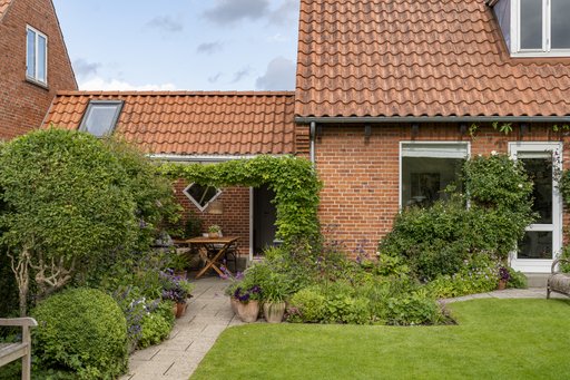 Rækkehushaven ligger i Virum lidt nord for København, og den består af en traditionel forhave og en helt lukket baghave. Man skal gennem huset for at komme ind i haven, der på den måde er helt privat.