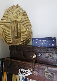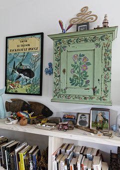 – Nu har jeg endelig fået plads til mine bøger i en solid reol, hvor hylderne ikke bøjer ned på midten under vægten. Desuden er der også blevet plads til nogle af de genstande med en spøjs historie, jeg har fundet på mine rejser til lande over hele kloden både i forbindelse med jobbet og i fritiden.