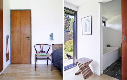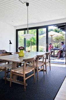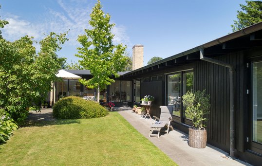 Huset på 125 kvadratmeter er blevet udvidet i længden med en tilbygning på 47 kvadratmeter, som harmonerer fint med det oprindelige hus, og hvor der nu er indrettet to teenageværelser. Respekten for husets medfødte kvaliteter og dets mange fine detaljer går igen overalt.