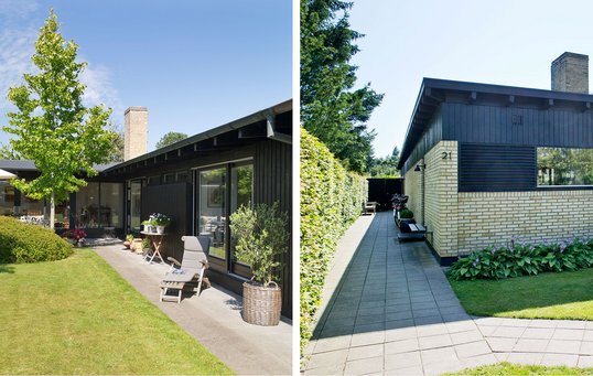 Nye vinduespartier fra gulv til loft sørger for, at der kommer mere lys ind i boligen. Endelig er facaden blevet delvist beklædt med sortmalet træ, mens de gule mursten er genbrug fra de gamle vinduespartier.