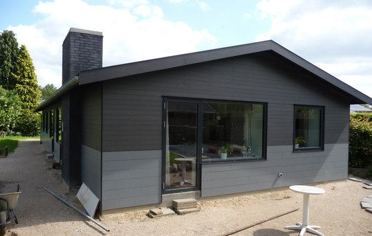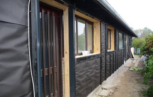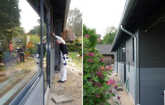 - Fundamentisolering, 200 mm ekstra facadeisolering og ny facadebeklædning af grå eternit.