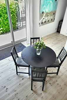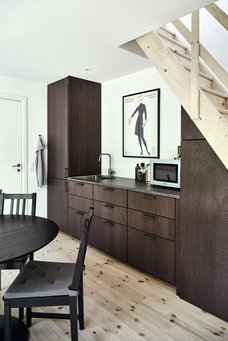 – Vi ville gerne have et træhus af klima- og bæredygtige årsager, og fordi det passer bedst ind der, hvor huset skulle ligge på grunden. Og selvom det store hus er hvidt, ønskede vi ikke hvidmalede facader på annekset og gik derfor efter et helt sortbejdset look med moderne linjer, siger Stine Bolther.