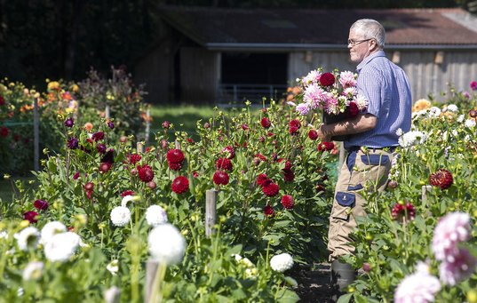 Vagn Stensig Kristensen dyrker sin georginehave på professionel vis med brug af store maskiner. Men er du vild med planten, kan du sagtens begynde i det små og med håndkraft. Her får du hans råd om at anlægge en fin georginehave: