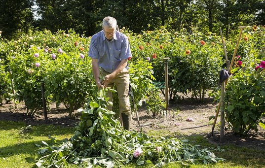 Arbejdet med 600 georgineplanter er ikke for de arbejdssky, og Vagn har ikke tal på, hvor mange timer han bruger på haven. Men han nyder hver eneste sommermorgen, hvor blomsternes skønhed stadig kan tage pusten fra ham.