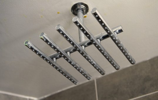 Alt er i god kvalitet - fra afløbsristen på gulvet til toiletskylleknappen.