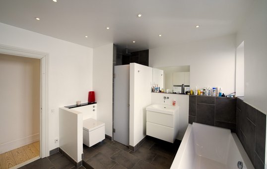 - Det gamle badeværelse blev lagt sammen med et depotrum.