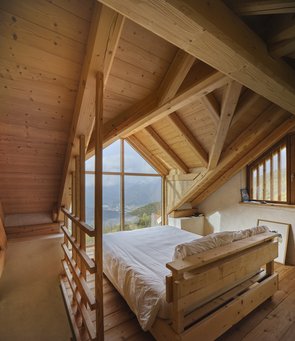 – For at få endnu mere loftshøjde og adgang til naturligt dagslys valgte vi at opføre to kviste med vinduer. Vinduerne giver fra den tilføjede hems, der fungerer som soveværelse, et fascinerende udsyn til naturen, der er et kæmpe plus ved huset, fortæller arkitekt Fabio Revetria fra Studio Officina82.