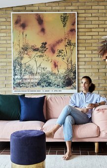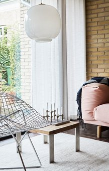 – Det var svært, og der gik lidt tid, før vi lærte det. Vi kom fra en højloftet lejlighed på Østerbro i København, hvor alt var hvidt, og først troede vi, at alt her i huset også skulle være hvidt som kontrast til de markante materialer. Men det skal det slet ikke.
