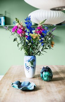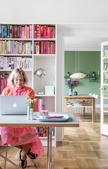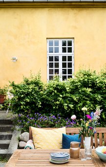 – Jeg elsker farver – de giver mig glæde, og jeg bliver i godt humør, når jeg kommer ind i et hjem fuld af farver. Jeg elsker at blande stilarter fra mange forskellige sammenhænge og så alligevel skabe en rød tråd igennem det hele – at skabe mine egne rammer, ligesom jeg selv har syet mange af tekstilerne og lavet keramikken herhjemme. Jeg har altid mange bolde i luften og er på vej i mange retninger, men jeg synes, vi har fået skabt et hjem, der favner os allesammen her. Vi elsker at holde fester, og det er tit her, at fodboldklubben og børnenes skoleklasser holder afslutning. Det skal der også være plads til.