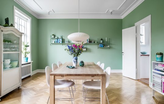 Grøn farve i spisestuen: G04 Salvie fra Dyrup