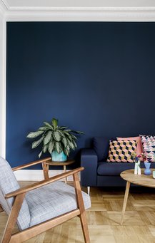 Mørkeblå farve i tv-stuen: Stiffkey blue No. 281 fra Farrow & Ball